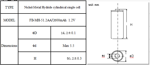 | H-AA2700A | 1.2 | 2700 | 14.5 | 50.5 | 35 | |